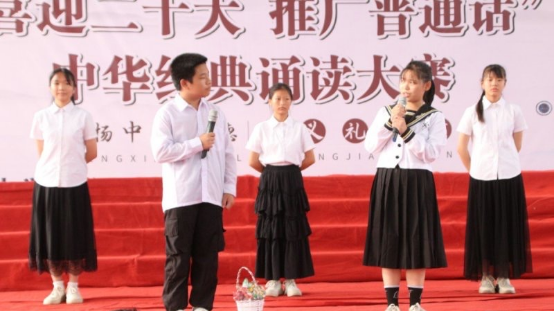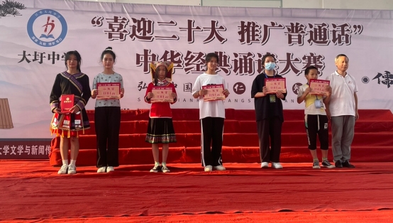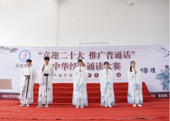 2022年9月28日,球王会官网湖南省语言文字推广基地在江华瑶族自治县开展以“喜迎二十大,推广普通话”为主题的线下宣传活动,并于当日下午13:30在大圩镇大圩中学举办中华经典诵读大赛。本次比赛由球王会官网湖南省语言文字推广基地、中共球王会官网文学与新闻传播公司委员会联合主办,江华瑶族自治县大圩中学承办。