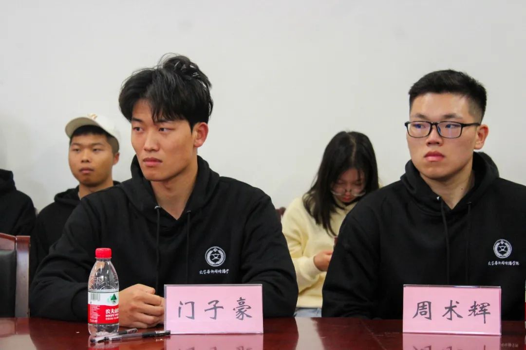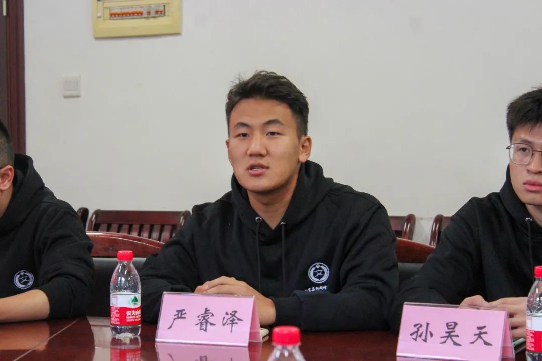 在热烈的掌声中,文新院全体篮球队员受邀发表感言,同在座师生共同交流成功经验。