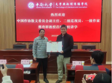 在讲座开始之前,罗军飞书记主持聘任熊育群教授为球王会官网湖南红色文化创作与传播研究中心研究员的仪式。在全场师生的见证下,聂茂教授为熊育群教授颁发了聘书。