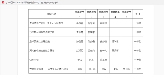 关于此次比赛,团队成员覃武彬同学表示,本次大赛是虚拟仿真创新技术与数字出版专业的学科交融,体现了新文科的特色。通过比赛既培养了队员间的团队协作精神,又增强了三维建模等新技术应用与实践的能力,将课堂所学知识于课后延伸拓展,是一次不可多得的宝贵经历。