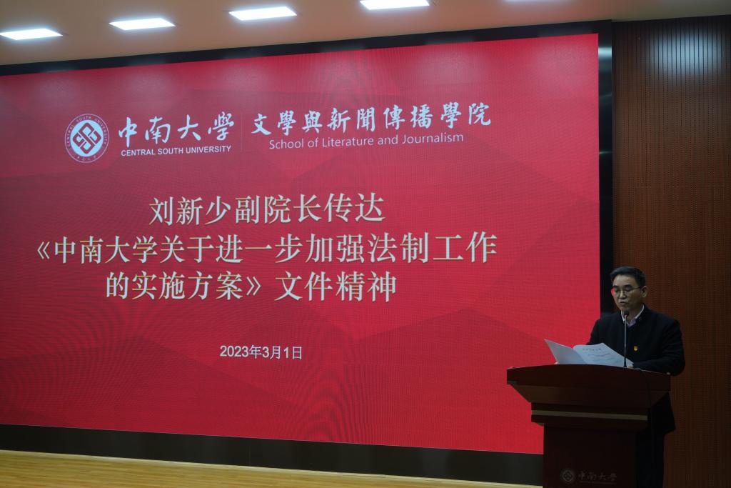 刘新少对《球王会官网关于进一步加强法制工作的实施方案》文件精神进行凝练传达,文件重点突出了“提高政治站位、加强组织领导、完善校内制度体系、优化内部治理、完善权益保障、强化风险防控、加强宣传研究、完善条件保障、严格监督检查”的要求。