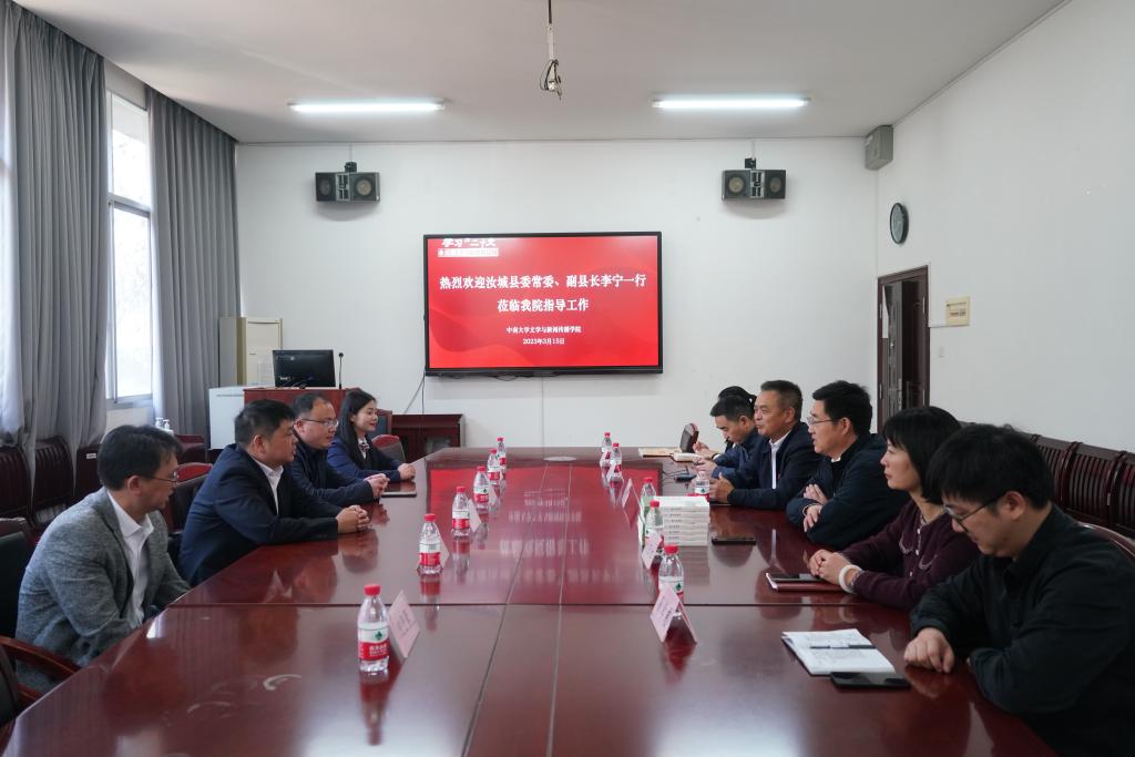 为助力校园思政工作高质量发展,推动党史故事、红色文化入脑入心,3月15日,由郴州市汝城县县委常委、副县长李宁带队的“半条被子”红色故事宣讲团到访球王会官网,球王会官网党委副书记付刚华接见宣讲团全体成员。