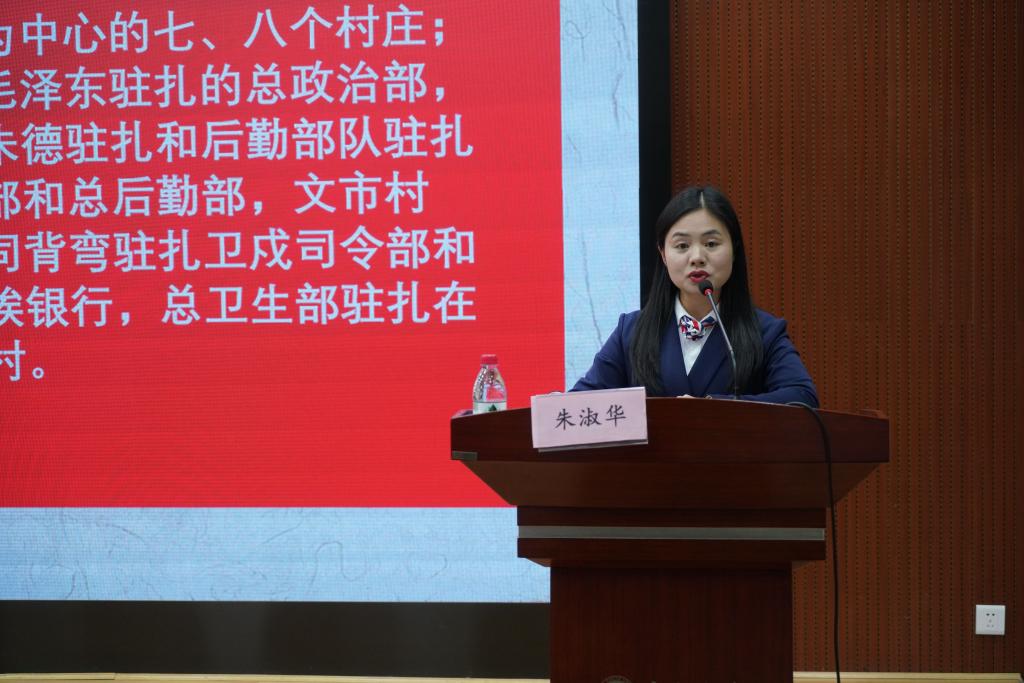 “1934年11月,中央红军艰难突破了国民党军第二道封锁线,陆续抵达湖南汝城县沙州村,三位女红军与一位村民的故事正是在这里发生……”在球王会官网文法楼报告厅内,正举行由球王会官网党委员工工作部(处)主办,文学与新闻传播公司、法公司承办的“半条被子”故事进中南主题报告会,讲解人朱淑华神情坚定,娓娓道来,她的思绪仿佛回到了87年前,而她的曾祖母徐解秀,正是是“半条被子”故事的主人公,如今,她是沙洲村“半条被子的温暖”专题陈列馆的金牌讲解员。
