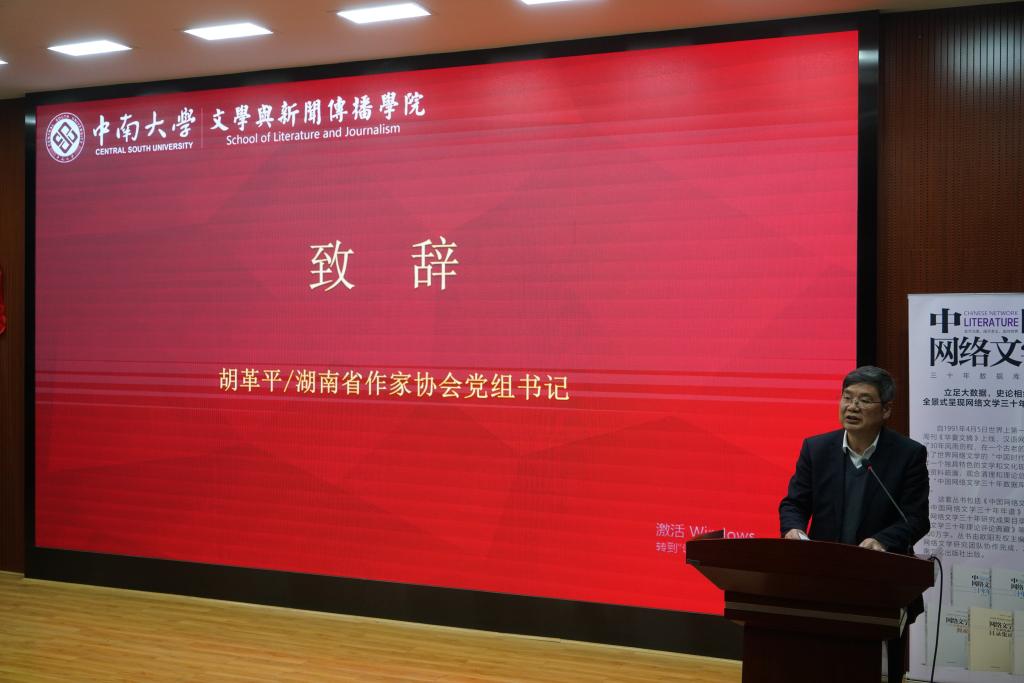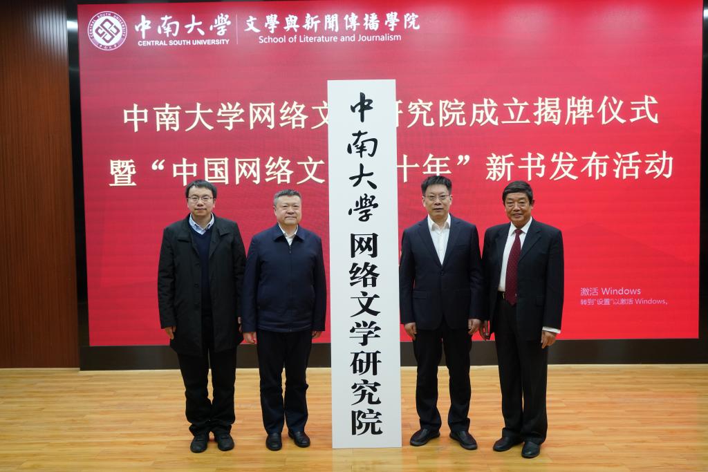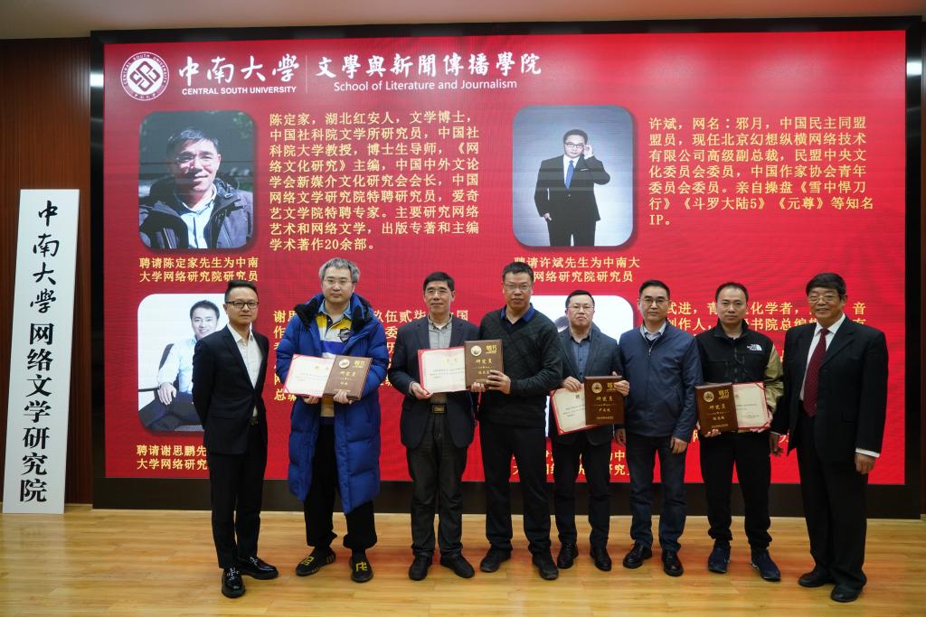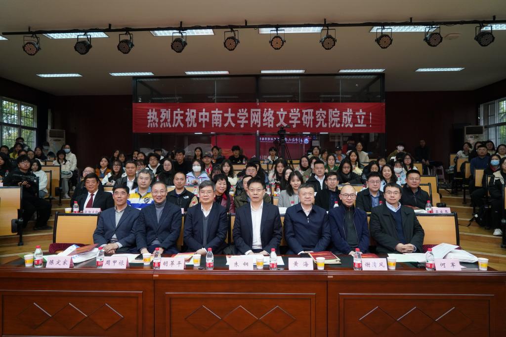 新华社湖北分社原副社长、总编辑周甲禄,中国社科院教授、中国文学网主编、中国新媒介文化研究会会长陈定家,中南出版传媒集团总编辑谢清风,湖南省作协副主席、湖南省网络作协主席余艳,湖南文艺出版社总编辑谭菁菁等出席揭牌仪式。球王会官网科研部、球王会官网文学与新闻传播公司领导和师生共150余人参加了揭牌仪式。