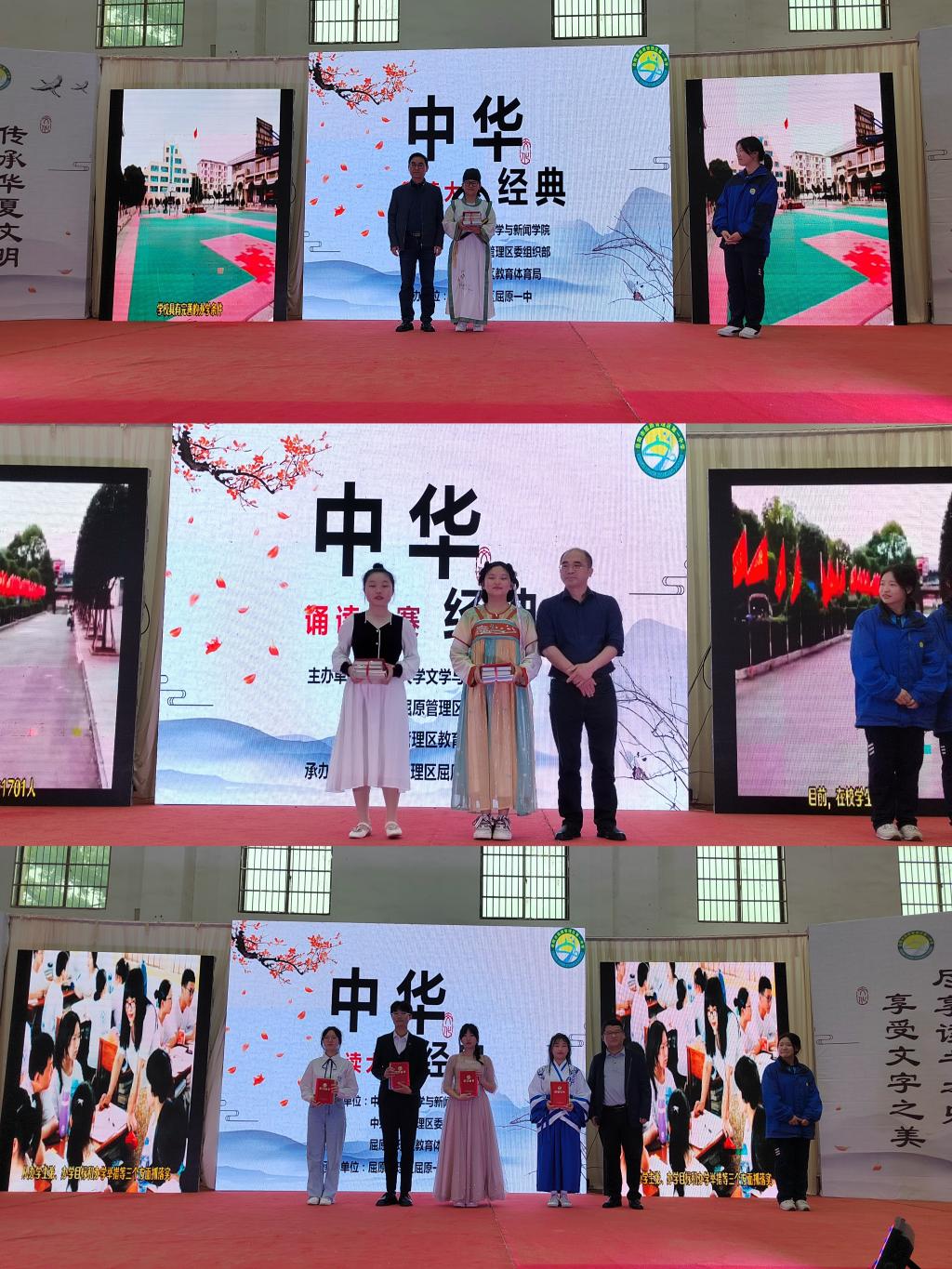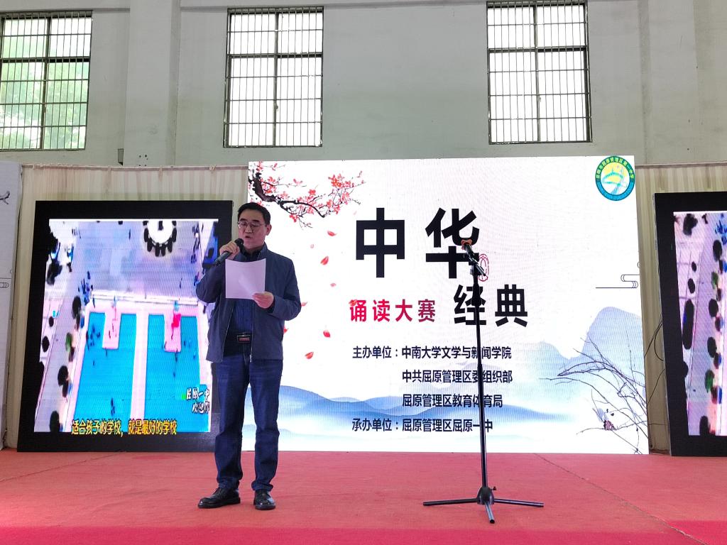 4月14日上午,由球王会官网文学与新闻传播公司、中共屈原管理区委组织部和屈原管理区教育体育局共同举办,屈原管理区屈原一中承办的第一届“中华经典吟诵大赛”在屈原一中体育馆举行。公司党委委员、副经理刘新少,中文系教师姜瑀,党政办教师曹修禺,中文系硕士刘星雁受邀为比赛评委,屈原管理区党委委员、组织部长、统战部长柳才平等相关单位领导出席活动。