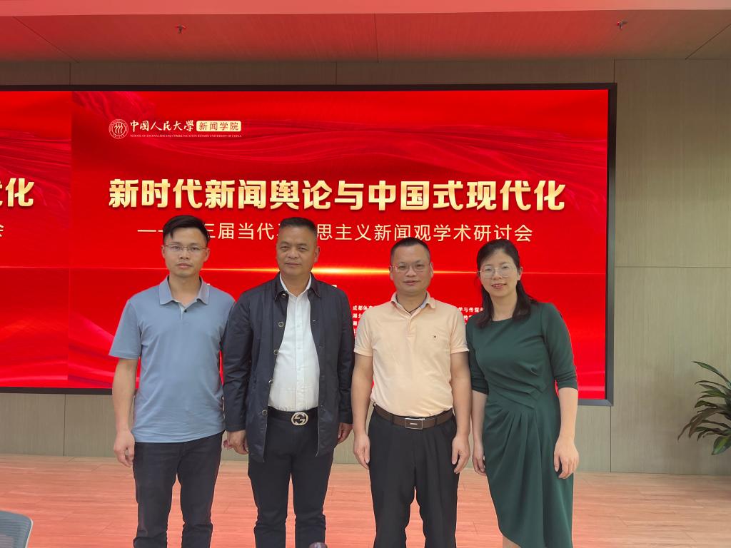 5月7日,公司党委书记罗军飞研究员带队赴中国人民大学新闻公司参加第三届新时代新闻舆论与中国式现代会——第三届当代马克思主义新闻观学术研讨会。公司传媒系易龙、盛虎、欧阳云玲等老师参加了本次研讨会。