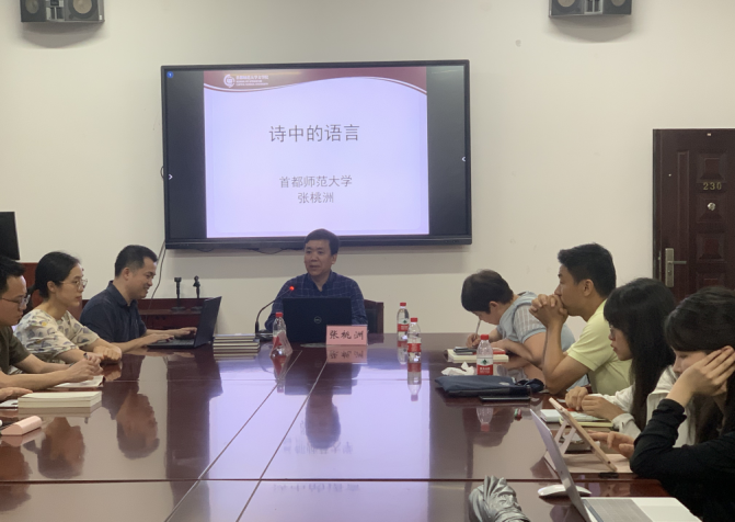 6月9日晚七点,首都师范大学张桃洲教授应邀来到公司,于文法楼230会议室开展了题为《诗中的语言》的精彩讲座。本场讲座由中文系易彬教授主持,来自国防科技大学、湘潭大学的多位老师以及公司纪海龙、王晓生、晏杰雄、盛虎等四十余位师生参加了本次讲座。