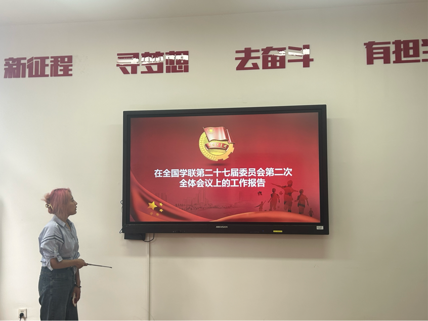 紧接着,组织部同学带领研会成员学习了《认真学习宣传贯彻党的二十大精神团结带领广大同学坚定跟党走、奋进新征程——全国学联第二十七届委员会第二次全体会议在京召开》的会议精神,希望研会干部能够沐浴着党的阳光雨露,始终引导广大同学坚定理想信念;以刀刃向内的勇气,纵深推进学联员工会组织改革;牢记服务同学宗旨,促进广大同学全面发展;弄潮于时代浪尖,带动广大同学砥砺奋进新征程。