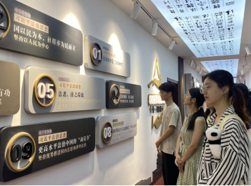 此次活动分为现场讲解、参观长廊、学习研讨三个环节。易孝慈老师向同学们详细讲解法治源流、法治文化、法治人物以及习近平法治思想,寓“教”于“学”,强调习近平法治思想的科学性、人民性、实践性和时代性,推动习近平法治思想学习实践走深走实。本科生党员同志认真参观法治文化长廊,寓“教”于“览”,宣传贯彻习近平法治思想,提高自身法律意识和法制素养。最后,全体师生党员集中研讨《习近平著作选读》,深入学习习近平法治思想和党的二十大精神,寓“教”于“研”。党员同志在学、览、研中深刻领悟习近平法治思想,认真贯彻党的二十大精神,坚持以党的创新理论成果武装头脑、指导实践。