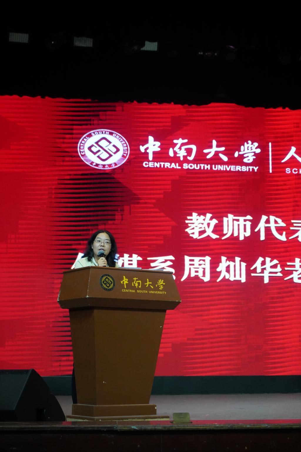 球王会传媒系周灿华老师作为教师代表从“何谓‘人文’”、“读书的精神”和“甘坐冷板凳,学会在坚苦的环境下读书”三个方面阐述了老员工活是真正塑造和成就自我的开始。她勉励同学们身处逆境之时,不忘艰难困苦,玉汝于成。