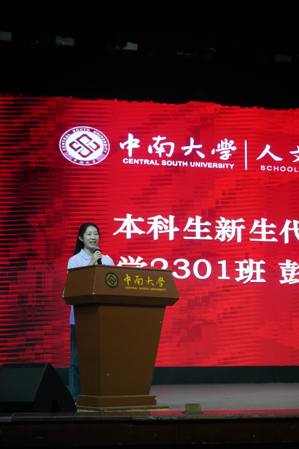 哲学2301班的彭韵洁同学作为本科生新生代表发表“拉弓向满月,提笔书华年”的主题演讲。她表示,在新的征程中,我们将在各自的专业学习中苦练本领,守正创新,秉持“文以化人,行健不息”的院训,于此勤学广识,履践致远,展吾辈风采。她还祝愿少年们一路快马扬鞭,自信而坚定,肆意而温柔,归来仍少年!
