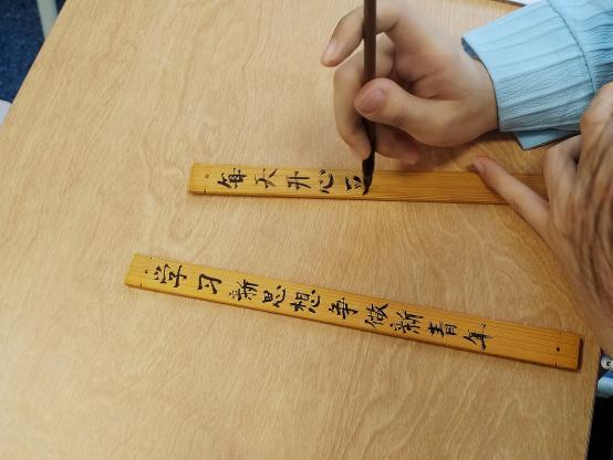 一雕一刻,一字一墨,它们是掩埋在黄沙里的断简残篇,是书写在故纸堆里的字句。简牍不仅承载着中华民族深厚的历史文化底蕴,更体现了中华民族五千年历史文化的悠久璀璨。为让同学们了解简牍,感受中华文化底蕴,以简牍制作学习习近平总书记重要讲话,团支书向同学们简单地介绍了简牍的相关知识,并让同学们亲手制作属于自己的简牍作品。