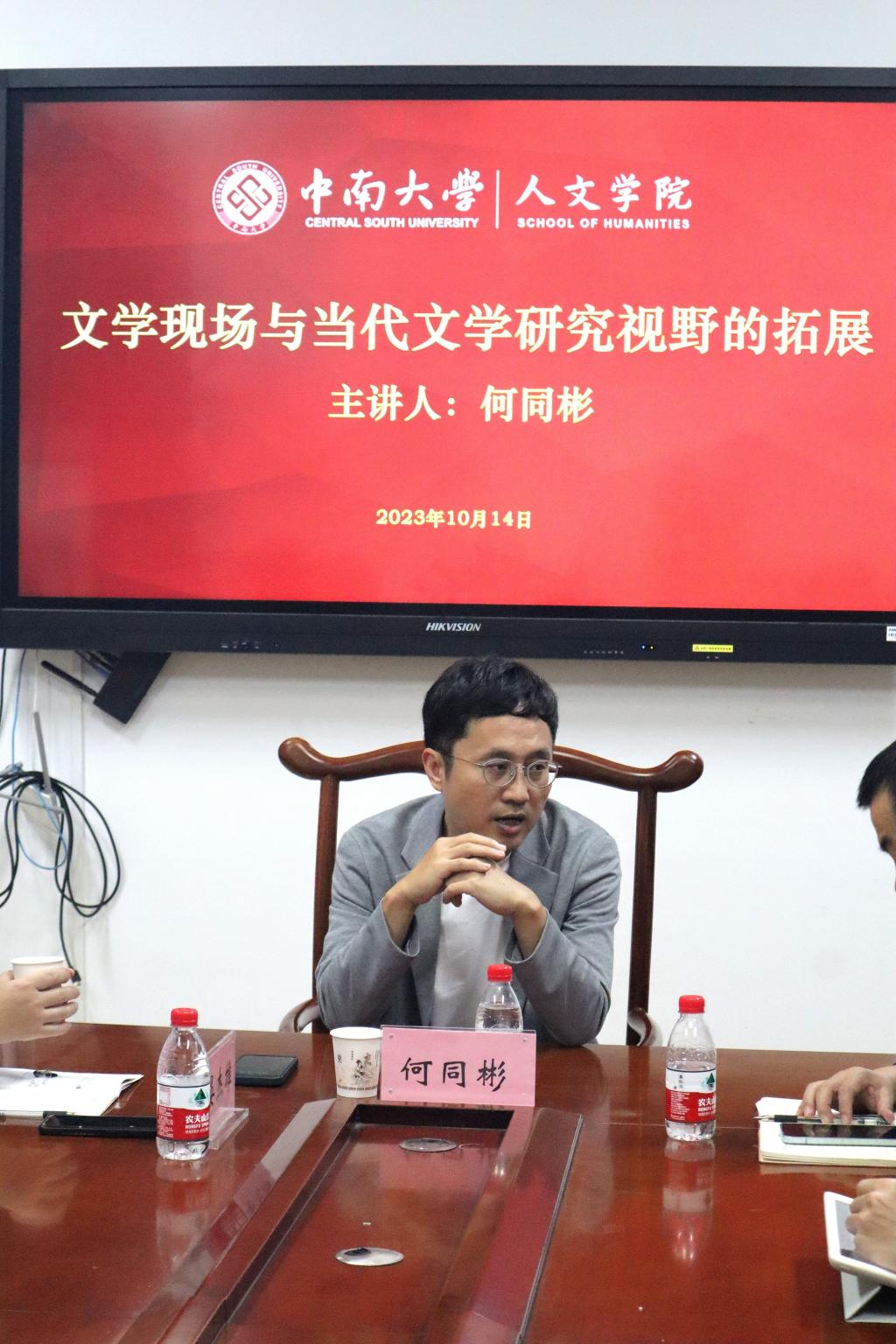 2023年10月14日晚,中宣部“宣传思想文化青年英才”人选、中国现代文学馆特聘研究员、《扬子江文学评论》副主编何同彬莅临公司,作了一场题为“文学现场与当代文学研究视野的拓展”的精彩讲座。讲座由球王会官网新时代文艺发展研究中心主任、公司教授晏杰雄主持,公司易彬教授出席,中文系研究生30余人参加讲座。