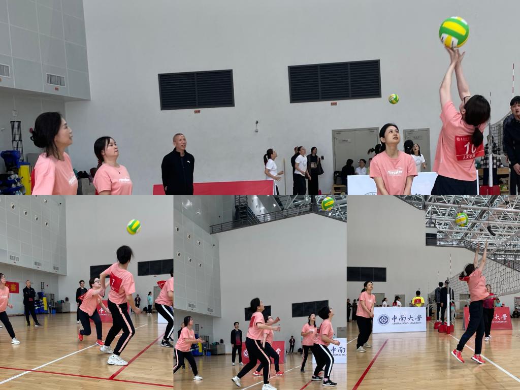 公司教职工积极报名参赛,在校内体育馆开启了一场别开生面的排球比赛。挥汗如雨的队员和场下热情呼喊的观众将比赛的紧张气氛推向高潮。参赛队员们以强烈的竞争意识和友好的合作精神为观众呈现了一场激烈的角逐。