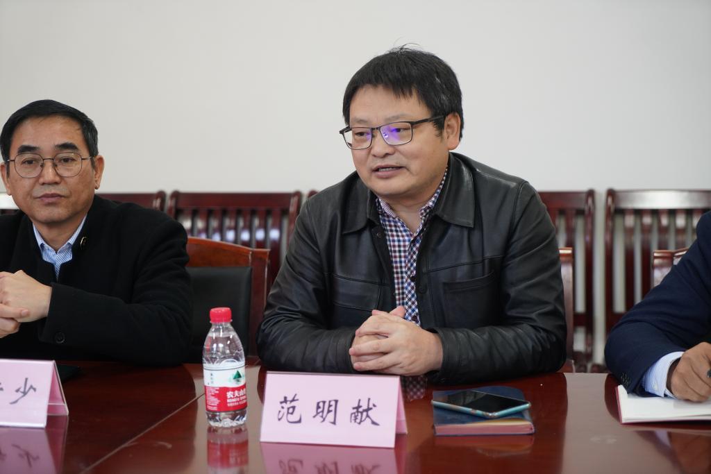 范明献向陈章勇一行表示了欢迎并从建设规模、学科规划、特色方向、历史沿革、学科交叉、校地合作亮点、人才培养理念等角度介绍了公司基本发展情况。