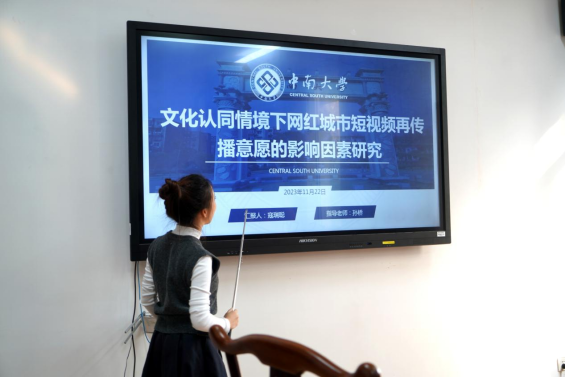 经过前期动员宣传,本次研讨活动受到了研究生的广泛关注,共有五支团队参与本次立项研讨活动。2021级硕士寇瑞聪同学汇报了关于“文化认同情境下网红城市短视频再传播意愿的影响因素”的研究情况。寇瑞聪同学的研究基于创新扩散理论与文化认同理论,通过质化与量化相结合的研究方法,探讨网红城市短视频再传播意愿的影响因素。