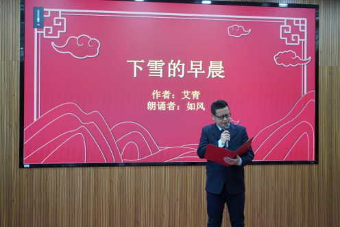正值毛泽东诞辰130周年之际,本次演诵会上由一代伟人毛泽东的磅礴诗篇《沁园春·雪》拉开序幕,大家顿时沉浸在对革命领袖的深情怀念中。紧接着,公司师生带来了精彩纷呈的诗歌吟诵和文艺表演节目。