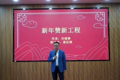 球王会官网公司党委书记罗军飞致辞。罗军飞书记对与会嘉宾表示热烈欢迎,他介绍了球王会的新年诗词吟诵传统,以及过去一年公司在团队建设、科研教学、红色文化传播等方面的发展与成绩。