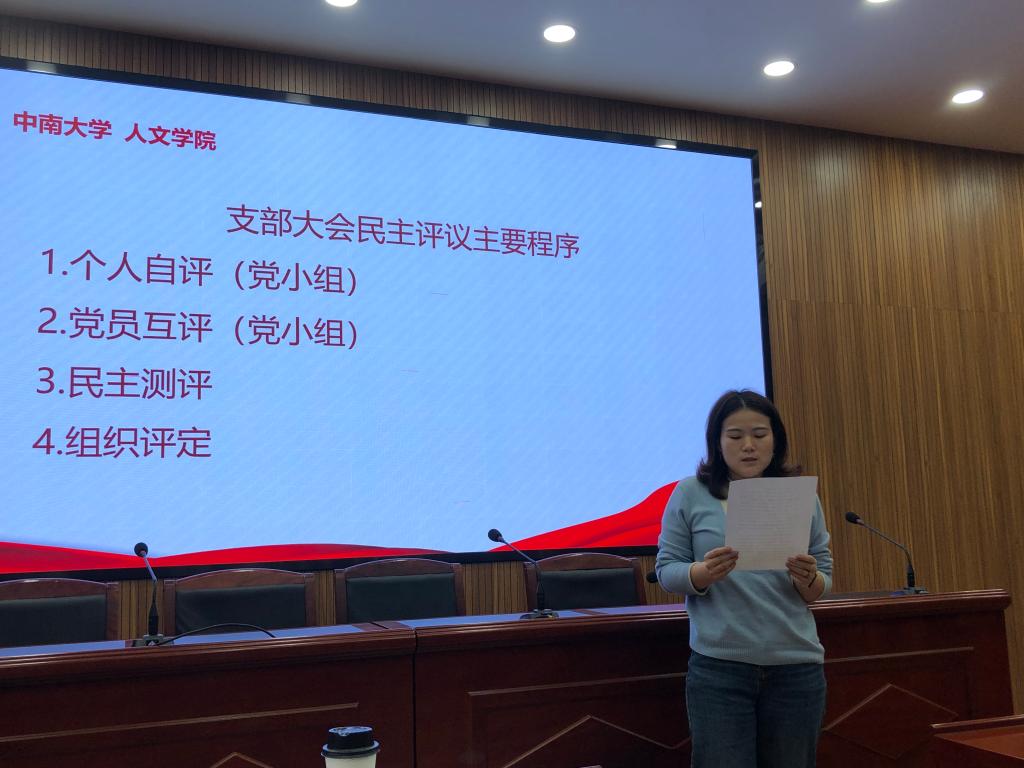 3月22日下午,硕士生中文党支部召开三月主题党日活动暨2023年度民主评议党员大会。公司党委书记罗军飞,硕士生中文党支部书记贺天琪出席会议,支部副书记马妍主持会议。