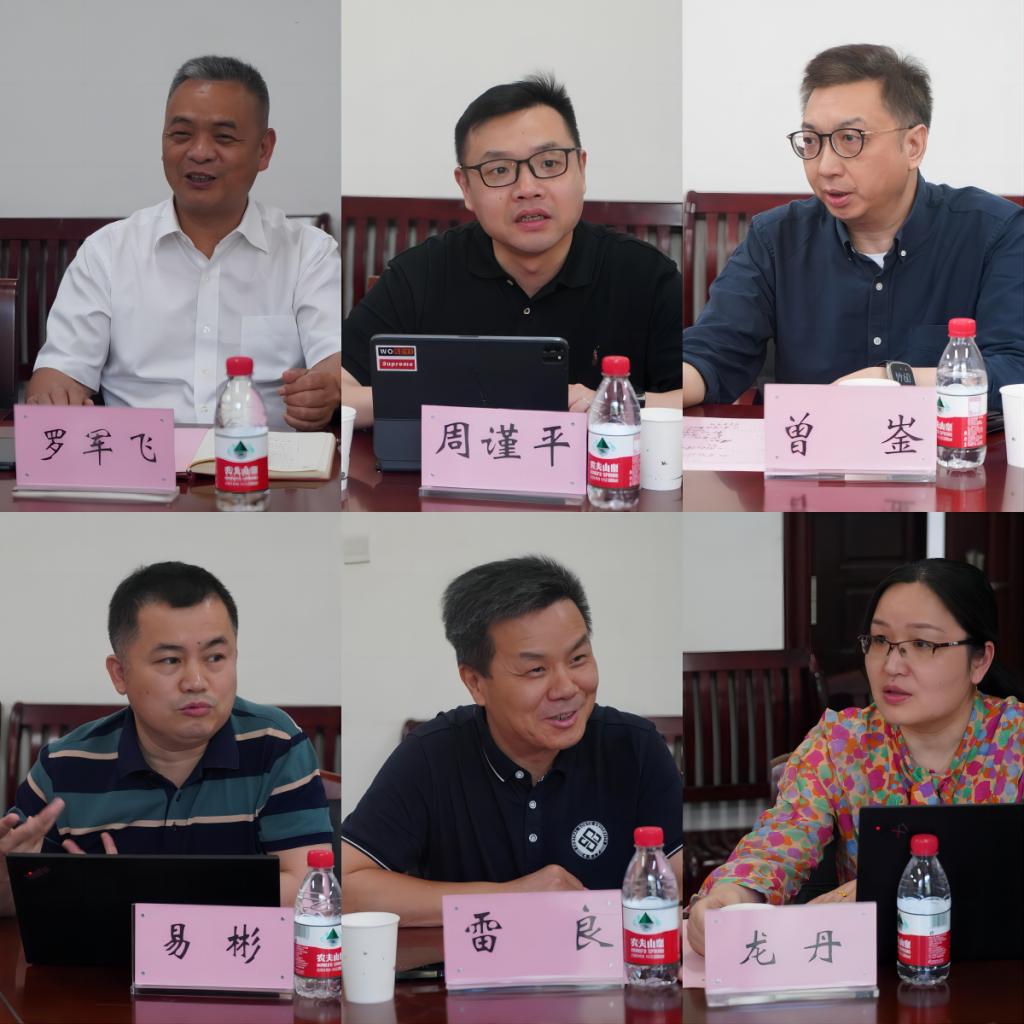 公司党委书记罗军飞,公司副经理、哲学学科带头人周谨平,公司副经理曾崟,中国语言文学学科带头人易彬,哲学系主任雷良,中文系主任龙丹就学科发展现状、团队建设取得成绩、学科下一步发展目标、落实学科提振举措、学科发展中遇到的困难进行了汇报。