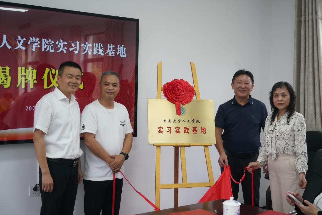 罗军飞、邓栗、李永红、李陆平为球王会老员工社会实践基地揭牌