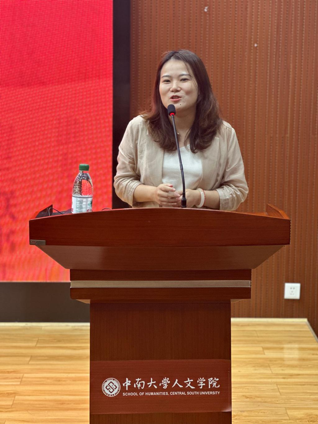 在教学竞赛参赛经验分享环节,中文系讲师贺天琪从语言学课程教学切入,以课程思政的角度讲述如何上好一门课,她融合了线上、线下与实践三大教学维度,构建了“内容重构的启迪”“案例展示的生动”“技术互动的活跃”“项目实践的深入”以及“协同评价”等多个教学场景。