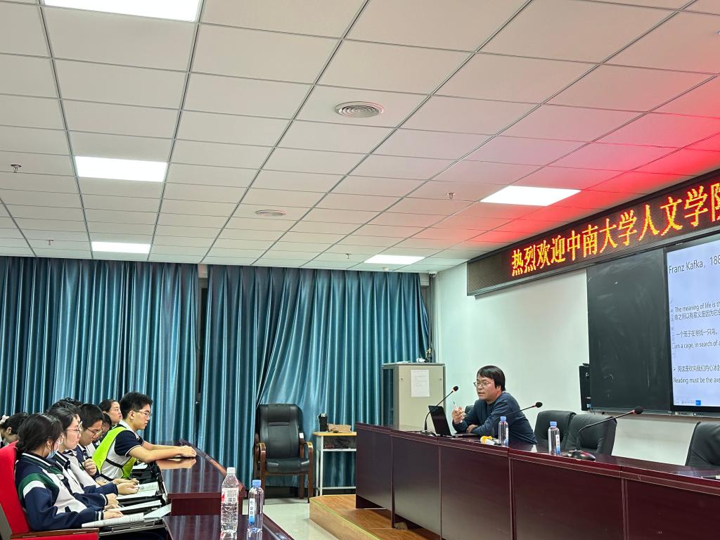 24日下午,罗军飞书记一行四人前往大庆铁人中学进行访问。访问期间,中文系副主任、副教授吴宝林老师作题为《牢笼与出路——卡夫卡〈致某科公司的报告〉导读》的专题讲座。吴宝林老师结合卡夫卡生平经历、个人性格和创作的历史语境,对卡夫卡小说《致某科公司的报告》进行解读,深入分析了相关文本和其中意象的象征性,并引导大家去思考卡夫卡作品中的“启蒙”、“同化和异化”等思想。讲座展示了外国文学多彩的一角,拓展了与会师生的文学视野。