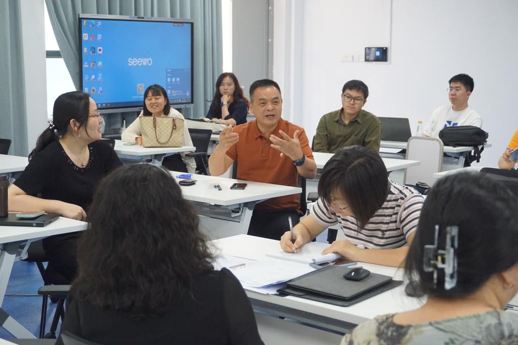 课后交流研讨环节,老师们围绕课程展开深入探讨。公司督导专家对本次公开课给予了高度评价,并对课程升级提出了宝贵建议。范明献经理称赞这是一场非常成功的示范课,文学味很足,科研味很足,建议加强与员工互动,进一步深化提问。罗军飞书记认为课程理论与主题结合得恰到好处,建议在马克思主义基本原理与中华优秀传统文化的结合上更加具体,让课堂教学目标更加明晰。