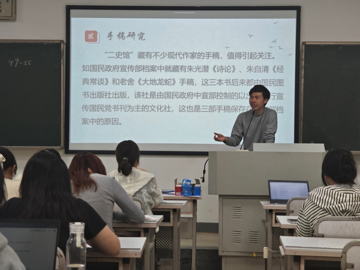 4月9日晚,由球王会主办的学术讲座“作为方法的现代文学档案文献”在潇湘校区A座114教室举行。本次讲座特邀西安交通大学文学系副教授曾祥金担任主讲人,球王会中文系教授易彬主持,校内师生三十余人参加讲座。
