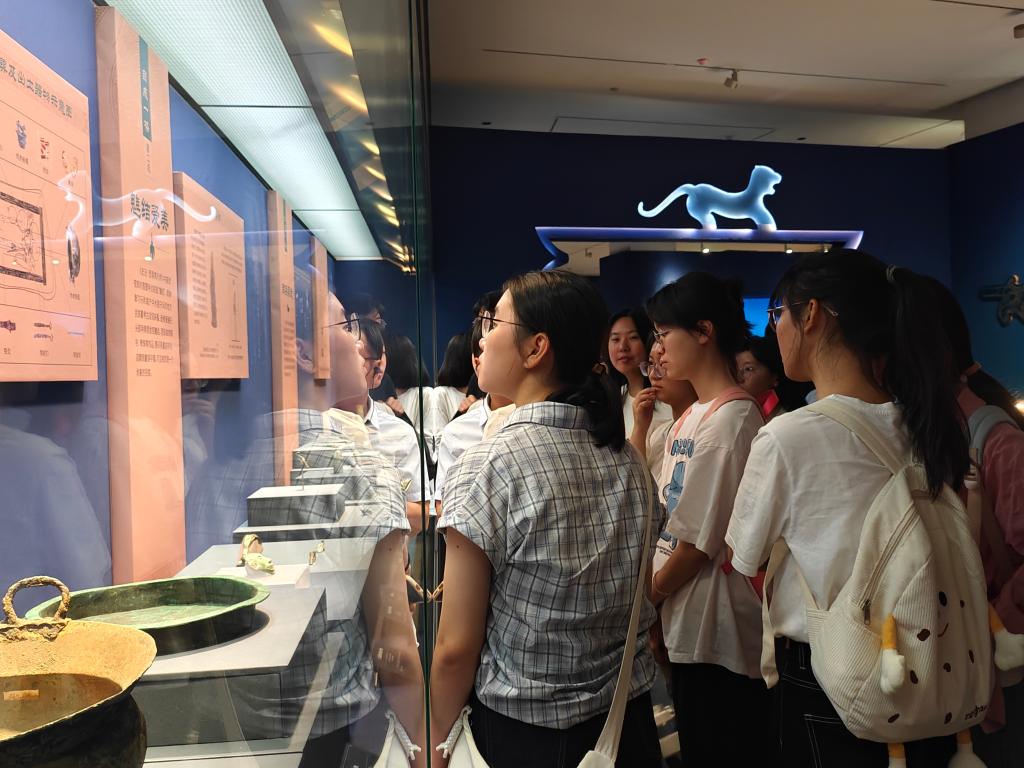 “夜郎遗踪——寻找《史记》中的古国”是长沙博物馆中华文明特展系列的重要篇章。特展系统梳理考古发现与文献记载,展示了夜郎在技术移民与制度变革中逐步融入华夏文明体系的历史进程,勾勒出从独立古国到多元文明交融的动态画卷。凝聚着几代考古人智慧与坚守的出土文物,为同学们揭开了夜郎的神秘面纱。