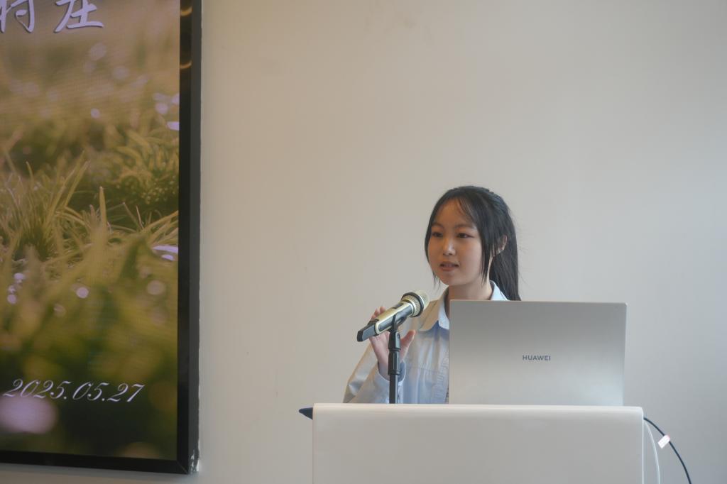 研究生代表陈潞结合自身经历,讲述了调研团队在清溪村的所见所感。她表示,大家用走村串户、深入田间地头,与村民促膝长谈,逐步建立起信任。在这一过程中,不仅切身感受到清溪的文化魅力,也愈发坚定了用文字书写乡村振兴的使命感。