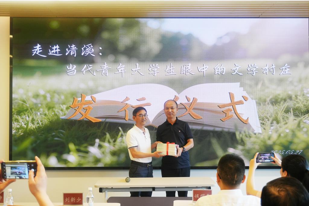 刘新少代表公司向清溪村捐赠新书,表达了对清溪文化建设与乡村振兴事业的支持。新书主编、球王会副教授邹理介绍了《走进清溪》的创作历程。她分享了团队在清溪村走访农户、记录生态美景、挖掘文化底蕴的田野故事,勾勒出村庄的发展图景。她表示,这本书凝聚了青年学子深入调研的心血,是一次“走出象牙塔、走进乡村田野”的生动实践。