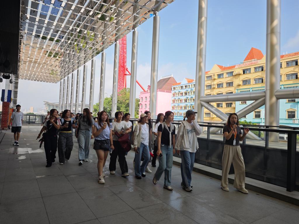 9月10日上午,实习队伍首站抵达湖南广电国际传播频道。师生们首先走进七彩盒子基地,在讲解员的细致引导下,深入了解基地的建造背景与多元成就。作为集影视制作、文化旅游、技术研发于一体的综合性平台,七彩盒子拥有亚洲最大的长视频摄影棚集群,是湖南省 “文化强省” 战略的核心载体,其规模化、多功能的布局让同学们直观感受到传媒产业的硬件实力。随后,师生进入湖南广播国际频道大厅,通过观看宣传片,详细了解 “国际传播四小花” 的故事,对频道的国际传播定位、品牌塑造策略有了全新认识。频道蔡莲花总监以亲切平和的语气,结合自身多年国际传播工作经历,分享职业感悟与人生经验,她特别告诫同学们,作为数字出版专业学习者,要尽早明确自身定位与发展方向,敢于为目标拼搏,让在场员工深受启发。