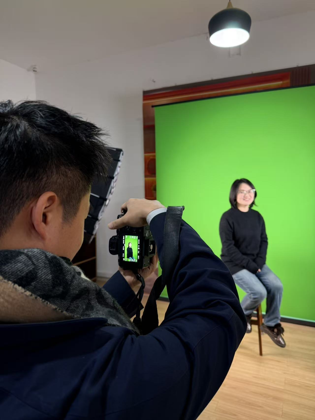 为完成此次拍摄任务,公司发动师生参与,打造一支师生共建的摄影团队,面向公司全体教职工开展集中形象照拍摄。团队提前在拍摄现场布置好简洁大方的背景,搭配专业补光设备,结合人文学科气质特点为老师们提供多样化的拍摄风格选择。团队成员耐心细致地调整角度、梳理细节,从姿态引导到表情校准,每一个环节都精益求精,尽力捕捉每位教师最真实、最动人的神态。聚光灯下既有老师们端庄得体的正装,也有温雅自然的常服;披上大衣,整好衣领,落落大方,言笑晏晏。一张小小的形象照,不仅写实了师者的风采,也串联起师生间的温情互动。