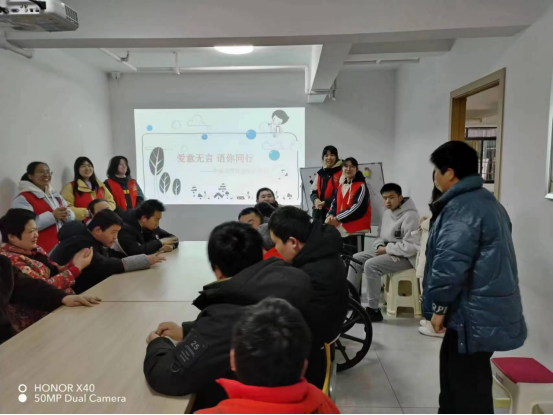 残障人士是被边缘化的弱势群体,远离熙熙攘攘的人群,常常容易被社会公众忽视,或许还因为自身缺陷而无法得到应有尊重与权利,但这并不影响他们乐观向上,热爱生活的态度。此次宣讲活动,我们与他们双向奔赴,真诚相待,建立联系,个人不再是孤岛,共同跨越言语的障碍,正是“爱意无言,语你同行“的意义。
