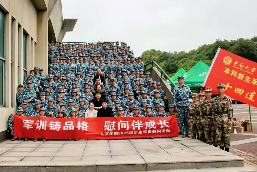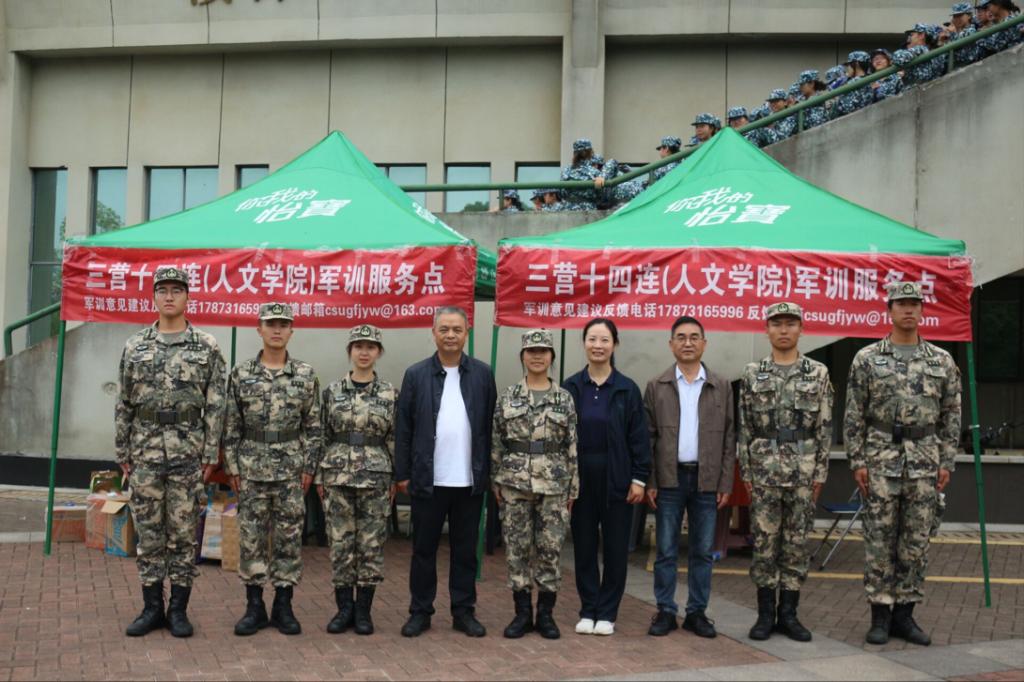 2025年10月17日上午,球王会官网公司党委书记罗军飞、党委副书记刘亚红、副经理刘新少及学工办全体辅导员,来到球王会官网潇湘校区体育场,携带慰问物资看望训练中的球王会2025级承训教官及员工。